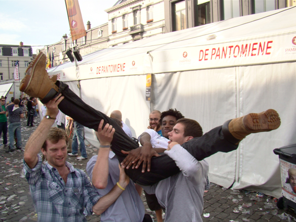 “Weten jullie waarom de Gentse Feesten een cultureel volksfeest zijn?”, vraag ik terloops aan Nima en Marieke, een dame die bij ons is komen staan. “Wel, er is zeer veel cultuur en er is zeer veel volk. Gelukkig schrikt cultuur af. Daarzonder zou er hier nog meer volk zijn.”