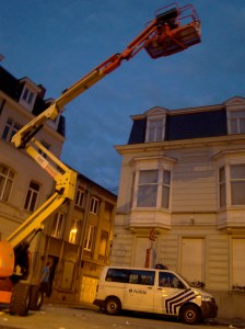 Bart bewondert de hoogtewerker van de flikken. 'Amai, zeg, daar valt mijn mond nogal van open', stelt de brave man vast.
