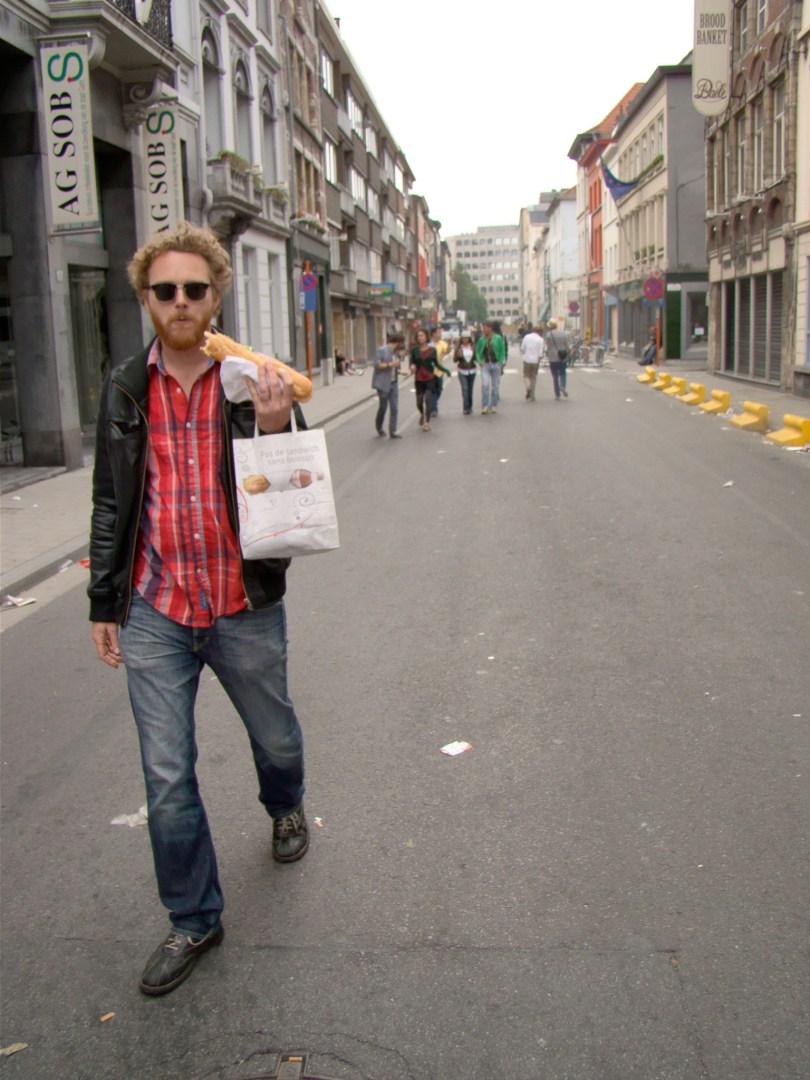 “Bon, ik ben dan maar eens naar huis, zeker”, besluit de gewonde jongeman. Tegen het advies van de sfeerbeheerder in wandelt hij richting Sint-Jacobs, waarbij hij rakelings langs zijn aanrander passeert. Ik volg op enkele meters afstand om eventueel heroïsch tussenbeide te komen of toch op zijn minst een foto te nemen. Maar er gebeurt niets.