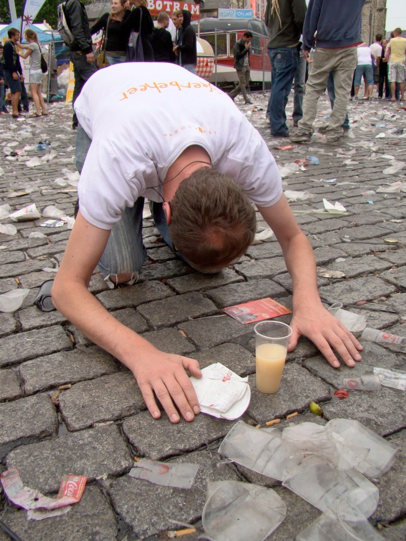 Terwijl wij ons allen gezellig staan te bezatten ligt iemand al verdacht lang buiten bewustzijn in de goot, tussen het andere afval van deze decadente maatschappij. Omdat ik me een goed burger wil tonen, stap ik naar een flik.