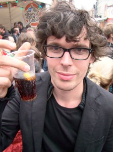 Het is een massa volk. Niet aangenaam. Matthias en ik beginnen bijna te huilen als kleine kinderen wanneer we zien dat de toog van de Kinky Star schier onbereikbaar is. Een halfuur van mijn leven verspillen om aan te schuiven voor een pintje? Mooi niet.