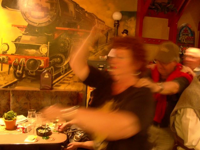 “Of ze het café nu afsmijten of niet, Diane laat hier wel een spoor na”, zegt de vriendelijke dame van daarjuist terwijl een uitbundige polonaise door de zaal kronkelt.