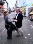 Jan komt bij me staan. Hij heeft iets horen waaien aangaande de discobal aan de dj-toren, zo deelt hij mee. “De spiegelbol is de clitoris van de Vlasmarkt, zeggen sommigen”, vertelt hij. “Maar niemand kan eraan, dus zal de Vlasmarkt nooit klaarkomen.”