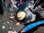 Steeds mee mensen verlaten het plein. Anne-Marie begrijpt niet waarom. “Waar gaat ge naartoe?”, vraagt ze. “De winkels zijn gesloten.”