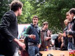 Ook wij verlaten uiteindelijk het heilige plein. Ik besluit nog even langs te gaan bij L’enfant terrible, waar een afterparty op gang is gekomen. Het terras zit vol nachtbrakers. Ik raak verzeild in een discussie over de 27 Club. “De Bijbel is fout. Jezus was ongetwijfeld ook 27”, zegt iemand.
