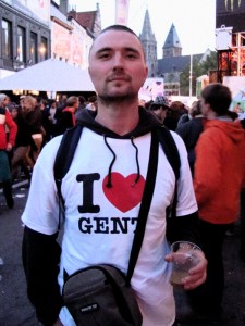 Op het plein ontmoet ik Maarten en Renzo. Maarten is nog altijd bezig met zijn project om de Gentse Feesten te vatten in stripvorm en heeft daartoe een notitieboekje gekocht opdat hij zich zijn eigen lotgevallen herinnert.