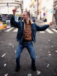 Ook Dieter benadert de feestvierders met een vergevend hart. Zoals ieder jaar verspreidt hij koffie én het woord van God. Ik ben hem reeds vele malen tegengekomen en ook al verschillen we fundamenteel van mening over een aantal metafysische aangelegenheden zoals het ontstaan van het heelal en de hand van God daarin, toch hou ik ervan om des ochtends een babbeltje met hem te slaan.