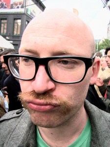 Ik bedank hem voor de suggestie, maar besluit dat het veel gemakkelijker is om gewoon te blijven staan. Laat de mensen maar tot mij cruisen, dat kost minder moeite. Kijk, daar komt Adrien Cocquyt al aangespoeld. Ook hij ergert zich een beetje aan de drukte.