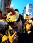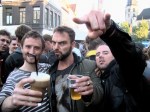 Met twee Duvels in de hand kan Joël zijn feestvreugde niet op. ‘Hier is niemand, overal zijn er mensen!’, juicht hij.