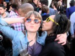 Een koppel staat vol overgave te genieten van de zon op de Vlasmarkt. Hun liefde wordt aangepookt door de warme stralen. Zeemzoete tralala vervolmaakt dit onderschrift.
