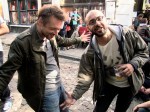 Dobberend op rustig water bekomen twee mannen van de woelige Vlasmarkt. Voor hen even geen stroomversnellingen meer.