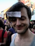 Gewapend met lange baard en dito haar bekijkt Fonne het hele gebeuren van op een kritische afstand. Zijn blik valt op het handje van het Sfeerbeheer. “Dat is het symbool van de repressie”, stelt de man. “Je bent hier om jezelf te vervoegen en volwassen te worden, edoch, de repressie probeert jouw leven te leiden en is nu zelfs al op de Vlasmarkt gearriveerd. Je moet daarom voldoende afstand nemen, zodat je een dam opwerpt tegen de repressie.”