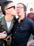 Twee feestvierders wisselen smaakstoffen uit. Zo controleren zij of hun respectievelijke pintjes hetzelfde effect sorteren op de papillen.