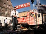 Als geen ander weet Renzo uiting te geven aan het boomstammetjesgevoel op de Vlasmarkt. Een uitgebalanceerd gebaar kanaliseert zijn vreugde.