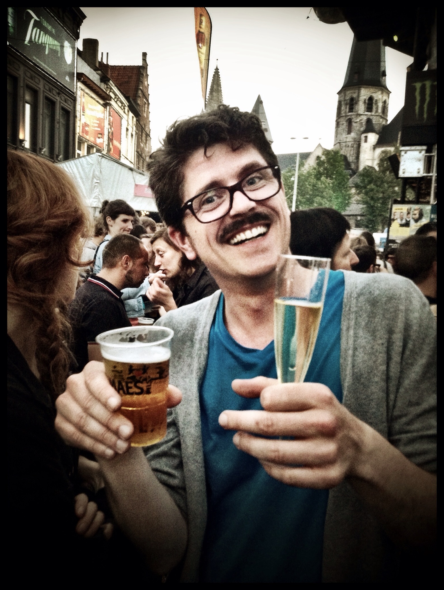 Er is veel volk, maar geen agressie. Dat komt omdat iedereen zijn best doet beleefd te blijven, zelfs bij rottigheid. Zoals wanneer een zatte dame tegen mij loopt, waardoor het bier uit mijn beker spat en in de mouw van mijn jas loopt. Bier tot aan mijn elleboog, slechts voor enkele seconden verfrissend en daarna vooral plakkerig. Het gouden vocht heeft ook een andere feestvierder bereikt. “Mijn excuses”, mompel ik.