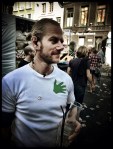 Doordat er zo weinig agressie is, zijn er veel blije gezichten op de Vlasmarkt. Maar toch kijkt Samir bijzonder somber. “Ik ben nogal scheef”, geeft hij toe. “Dat heeft te maken met de leeftijd. Zodra er een ‘3’ voor staat, ben je telkens als je uitgaat zó naar de kloten.”