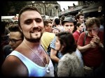 Terug op het plein loop ik Hans en Trudy tegen het lijf. Zij zijn van plan zich door de massa te wurmen. Ik raad hun aan om via het achterstraatje naar de overkant te wandelen, maar daar heeft Trudy geen oren naar. Het is net haar bedoeling om zich tussen al die zweterige mensen te persen.