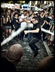 Ongemerkt heeft de zon weer de horizon veroverd en de nacht verdreven. Het gevreesde sluitingsuur komt opnieuw in zicht. “De therapeutische sessie is weer over. Als ervaren Feestenganger mag ik dat wel zeggen”, meent Sam. “Maar het blijft moeilijk om te gaan slapen, omdat je nog altijd verwachtingen hebt. Terwijl die gewoon bullshit zijn. Morgen is er enkel nog desillusie. Ooit heeft Lieven Vandenhaute deze bende op de Vlasmarkt omschreven als dansende lijken. Inderdaad, dit is de dansende desillusie.”